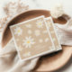 Boho Daisy Floral Napkins é caracterizado por um estilo 'boho' com trabalho de arte floral margarida e cor verde neutra e bege.