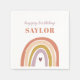 Bonito Boho Rainbow Peach Blush Birthday Napkins apresenta uma adorável dupla de arco-íris em tons de rosa, pincel, mostarda, aqua e marinho, juntamente com a caligrafia moderna.