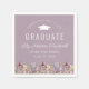 Uma bela borda floral de aquarelas enfeita a borda inferior desses guardanapos de festa de formatura de vassoura. As palavras "parabéns ao nosso formando" rodeiam uma silhueta de um boné tradicional de papelão. Personalize o texto branco em um fundo mauve, com o nome do formando em script de escrita manual e o ano escolar e de classe em fontes sans serif.