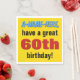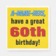 Este ousado design de guardanapo de papel, tema de aniversário, apresenta uma mensagem como "A-Name-Here, faça um excelente de 60 anos!", onde o nome e o número de aniversário podem ser personalizados. Os guardanapos de papel como estes podem ser usados numa festa que está a ser realizada para celebrar o aniversário de alguém.
