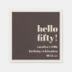This personalized birthday napkin in brown features bold, modern typography with a playful “Hello Fifty” headline and a clean, minimal layout. The neutral color palette works well for milestone birthday celebrations, cocktail parties, and dinner tables. Customize the name, age, and date to match your event details. A stylish option for celebrating a 50th birthday with a modern look.