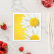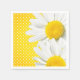 Guardanapos de papel com bolinhas amarelas e flores margaritas brancas e amarelas.