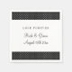 Adoraria bolinhas branca e negra para sempre, Napkins. Modelo de tipografia clássica com padrão de polkadots. Parte do conjunto elegante com decorações de mesas e artigos de papelaria. Personalize com seu próprio slogan e nomes.