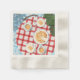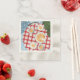 Encantador, aconchegante, brinque de domingo com amigos. A mesa do café é uma camada plana com bolo e café cappuccino para dois em uma mesa com um pano vermelho e branco de mesa. Plantas de Monstera e azulejos espanhóis tradicionais no chão. Adoraria ver esta design na natureza; coloque-me no Instagram @parry_vegan