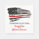 Adicione o toque final à sua aposentadoria de bombeiros ou festa de formatura de bombeiros com estes fracos guardanapos de bombeiros russos de linha vermelha e material de festa. DESIGN americano na bandeira do Bombeiro, design vermelho moderno. Esta coleção de formatura de bombeiros será favorita. Estes guardanapos de graduação de bombeiros também são perfeitos para a aposentadoria de bombeiros, e parabéns podem ser mudados para uma aposentadoria feliz. Veja nossa fina coleção de linhas vermelhas para convites de graduação de bombeiros, presentes de bombeiros, favoritos para festas e suprimentos. COPYRIGHT © 2020 Judy Burrows, Black Dog Art - Todos Os Direitos Reservados. Bombeiro Thin Red Flag Parabéns Napkins
