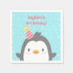 Planejar uma festa de aniversário de dezembro de inverno? Que tal um pinguim temido? Estes guardanapos de papel são perfeitos para uma festa de pinguim! Tem um pinguim cinza bonito e feliz que está vestindo um chapéu de festas! Um padrão de estrelas e pontos fundo azul claro. Personalize com a mensagem do seu partido!