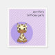 Este guardanapo de aniversário mostra um desenho de girafa bebê com grandes olhos pretos sobre um fundo roxo geométrico. A girafa é tão fofa que vai desenhar a atenção de todos! Se você está procurando por doces suprimentos de festa feminina para o aniversário da sua garota, não olhe mais.
