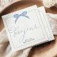 Apresentando tons azuis suaves, arcos azuis e um roteiro gracioso, este design emparelha-se perfeitamente com qualquer celebração parisiense ou coquete.