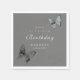 Bonitos guardanapos de papel para festas de aniversário adultos modernos em cinzas neutras com borboletas pintadas à mão contendo um padrão de rosa floral. Personalizável para qualquer marco de aniversário