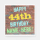 Este divertido design de guardanapo de papel com tema de aniversário apresenta uma mensagem como "FELIZ 44 BIRTHDAY, NAME-AQUI!", onde o nome pode ser personalizado. O fundo apresenta uma representação de uma parede de tijolos constituída por alguns tijolos de cor castanha avermelhada. O texto de mensagem personalizável apresenta cores como azul, amarelo e verde, e tem uma aparência inspirada pela do grafite pintado. Napkins como estes poderia talvez ser usado numa festa de aniversário para alguém que comemora seu quarenta e quarto aniversário. [~Z0000271]