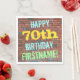 Este divertido design de guardanapo de papel com tema de aniversário apresenta uma mensagem como "FELIZ 70 BIRTHDAY, FIRSTNAME!", onde o nome pode ser personalizado. O fundo apresenta uma representação de uma parede de tijolos constituída por alguns tijolos de cor castanha avermelhada. O texto de mensagem personalizável apresenta cores como azul, amarelo e verde, e tem uma aparência inspirada pela do grafite pintado. Napkins como estes poderia talvez ser usado numa festa de aniversário para alguém que comemora seu setuagésimo aniversário. [~Z0000271]
