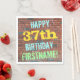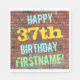 Este divertido design de guardanapo de papel com tema de aniversário apresenta uma mensagem como "FELIZ 37º ANIVERSÁRIO, NOME PRIMEIRO!", onde o nome pode ser personalizado. O fundo apresenta uma representação de uma parede de tijolos constituída por alguns tijolos de cor castanha avermelhada. O texto de mensagem personalizável apresenta cores como azul, amarelo e verde, e tem uma aparência inspirada pela do grafite pintado. Napkins como estes poderia talvez ser usado numa festa de aniversário para alguém que comemora seus trinta e sete anos. [~Z0000271]