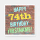 Este divertido design de guardanapo de papel, tema de aniversário, apresenta uma mensagem como "FELIZ 74º ANIVERSÁRIO, FIRSTNAME!", onde o nome pode ser personalizado. O fundo apresenta uma representação de uma parede de tijolos constituída por alguns tijolos de cor castanha avermelhada. O texto de mensagem personalizável apresenta cores como azul, amarelo e verde, e tem uma aparência inspirada pela do grafite pintado. Napkins como estes poderia talvez ser usado numa festa de aniversário para alguém que comemora seus setenta e quatro anos de aniversário. [~Z0000271]