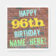 Este divertido design de guardanapo de papel com tema de aniversário apresenta uma mensagem como "FELIZ 96º ANIVERSÁRIO, NOME AQUI!", onde o nome pode ser personalizado. O fundo apresenta uma representação de uma parede de tijolos constituída por alguns tijolos de cor castanha avermelhada. O texto de mensagem personalizável apresenta cores como azul, amarelo e verde, e tem uma aparência inspirada pela do grafite pintado. Nápoles como estas poderiam talvez ser usadas numa festa de aniversário para alguém que comemora o seu 96º aniversário. [~Z0000271]