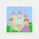 Os guardanapos de papel apresentam um príncipe, princesa, castelo, até o dragão que protege o castelo!