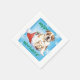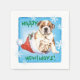 Celebre a temporada de festas com um cachorrinho bonito de Bulldog sentado em um chapéu de Papai Noel no meio de flocos de neve e as palavras, Feliz Howlidays!