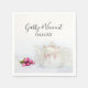O elegante Bule de chá e Papel de Casamento de Rosas Rosa Napkins pode ser personalizado com os nomes da noiva e do noivo e data para uso na sua festa de chá de jardim bonito, chá de panela ou coquetel de casamento e recepção. Estes guardanapos de chá alto descartáveis e elegantes apresentam uma fotografia floral de um pote de chá florido com rosas rosa e cetim branco.