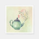 A ilustração da cor da água apresenta um grande bule verde com primaveras de bagas e galhos de folhas em fundo de lavagem abstrato