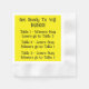 Aproveite seu lanche ou coquetel e pare com a confusão do que acontece quando a rodada termina. Este guardanapo Bunco te leva a estar no lugar certo para a próxima rodada. A cor de fundo e o texto podem ser alterados. Totalmente personalizável para seu esquema de cores e numeração de mesas. Veja mais itens do tema BUNCO em nossa loja.