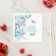 Butterflies Floral Blue Purple Gold Birthday Paper Napkins. Design has a adorable pink and purple butterflies and flowers and watercolor blue splashes.