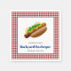 Adicione este guardanapo personalizado ao seu próximo churrasco. O design oferece um grande gráfico de um cachorro-quente e é acentuado com uma borda vermelha verificada. O texto personalizado permite adicionar seu nome e data.