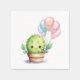 Planta de cacto de aquarela em um pote com balões de aniversário.