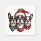 Uma bela ilustração dos cães de Boston Terrier vestidos para o Natal. Perfeito para amantes de animais de estimação e pais de cães durante o feriado.