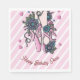 calçados de balé bonito para sua pequena bailarina, acentuados com flores e miçangas. Um fundo de faixa rosa e branca completa o conjunto. Pode ser personalizado.