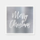 Estes fraternos elegantes guardanapos de férias exibem as palavras "Feliz Natal" em uma elegante fonte de pincel em branco sobre um fundo de metal esfregado falso prateado.