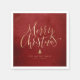 Os guardanapos personalizados de papel de Natal apresentam uma folha de ouro falsa, escrita à mão, um roteiro caligrafia "Feliz Natal" e árvore sobre fundo texturizado vermelho, simples, moderno e elegante.