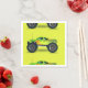 Um monstro formidável, seu exterior robusto adornado com cores vibrantes e decais ousados, rugas com uma aura de poder e entusiasmo contra um nítido pano de fundo de verde limão, incorporando o espírito excitante da aventura fora de estrada e triunfo alimentado pela adrenalina. O impressionante contraste entre o caminhão arrojado e o fundo vivo do verde limão cria um espetáculo visual dinâmico.