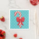 Este guardanapo apresenta a festiva e fofa ilustração vermelha e branca de Destei de uma deliciosa bengala natalícia com um belo arco vermelho. A cor de fundo é azul com um padrão de floco de neve.