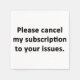 Para o amante sarcasmo em todos nós. Veja este design "Cancelar minha assinatura para seus problemas" no roupa, canecas, mousepads, botões e outros presentes exclusivos.