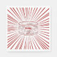 Uma ilustração retrógrada do estilo poster da publicidade de uma lata de atum cercada por uma explosão de sol de vermelho.