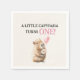 Celebrate your little one’s first birthday with this adorable capybara napkin featuring soft watercolor artwork and the phrase “A Little Capybara Turns One”. The gentle, pastel style makes it a perfect match for baby animal, woodland and first birthday party themes. Ideal for creating a coordinated and charming party table setup.