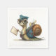 Um caracol encantador vestido como um trabalhador postal dona óculos e um boné azul, com sua carapaça servindo como uma mochila cheia de cartas, enfatizando seu adorável compromisso de entregar correio