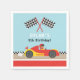 Guardanapos de papel de festa com design de tema de corrida! Design apresenta um carro de corrida esportiva vermelho com um pequeno garoto racer e uma bandeira de corrida de azulejos brancos e pretos. Excelente para aniversários que adoram carros de corrida! Adicione sua mensagem de festa!