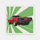 Carro de músculo vermelho contra um fundo de guardanapos de papel de raios verdes dinâmicos.