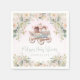 Lindas guardanapos de chá de bebê de princesa pastel com carruagem de princesa de conto de fadas vintage em um belo fundo floral de aquarela. Estes guardanapos de chá de bebê de princesa são facilmente personalizados com as informações do seu evento.