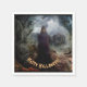 Bem-vindos à minha casa amaldiçoada, entrem se ousarem! Ilustração gótica de horror de um espírito esquelético assustador em uma floresta escura com um gárgula, cogumelos estranhos e corvos. design de excelente para festas de Halloween com texto personalizável.