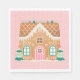 Este design de guardanapo de troca de biscoitos apresenta uma festiva casa de pão-de-gengala decorada com gomas de rosa, aqua e gomos de goma-de-coleira sobre um fundo branco com bolinhas rosa e branca. Coordena-se com a coleção do Partido Gingerpão.