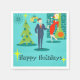 Este Casal de Cartoon Retro Holiday Coquetel Napkins vai colocá-lo no espírito de feriado. O design apresenta um fundo turquesa com tijolos lacrimogêneos e uma lareira de cone verde-oliva. Há um relógio de parede lacrimogêneo e uma lâmpada pendente de dois níveis em tons de amarelo, azul e preto. Uma árvore de Natal verde é enfeitada com uma estrela amarela e ornamentos lacrimogêneos. Na frente e no centro, há um distinto empresário martini a nadar num terno azul e gravata laranja. Ao seu lado, sua loira bomba de uma esposa troféu está vestindo um vestido vermelho de bruxa e um chapéu de Papai Noel enquanto segurava uma bandeja de martinis. Abaixo da fotografia, duas estrelas antigas rodeiam as palavras "Felizes Feriados." Fa-la-la-di-da!