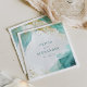 Estas modernas guardanapos de casamento abstratas para a praia apresentam respingos de tinta alcoólica verde aqua e dourada para um sutil clima costeiro. Perfeitas para casamentos de verão à beira-mar e casamentos de destino em praias tropicais.