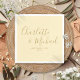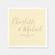Elegantes guardanapos amarelos botão-de-ouro com nomes no estilo assinatura para casamento, esses guardanapos modernos podem ser personalizados com suas informações em letras douradas chiques. Criado por Thisisnotme©