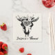 Guardanapos de coquetel de casamento boho personalizados com crânio de gado com crista floral. Adicione o nome de qualquer casal para um presente ou ocasião especial. Visite minha loja para a coleção completa de designs de borracha de madeira