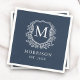 Guardanapo De Papel Casamento Botânico de Marinho Azul Crest Monograma