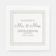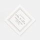 Os guardanapos de papel branco moderno, chique e elegante com os nomes da noiva e do noivo e a data do casamento.