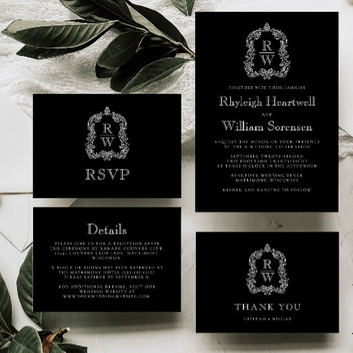Classic Monogram Crest Black White Wedding SuiteCriado por Akhates Designs