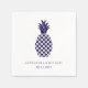 Estes guardanapos são a escolha perfeita para um casamento elegante ou tropical! Um abacaxi azul marinho aparece junto com seus nomes e data de casamento em texto de marinho correspondente.