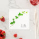 O elegante Livro de Casamento "Vinha Viva Verde" Napkins pode ser personalizado com os nomes ou iniciais da noiva e do noivo e data para uso no chá de panela do seu jardim ou na sua festa e recepção. Estes guardanapos descartáveis personalizados clássicos apresentam uma fotografia natural de uma vinha verde-inglesa e folhas com fundo branco.